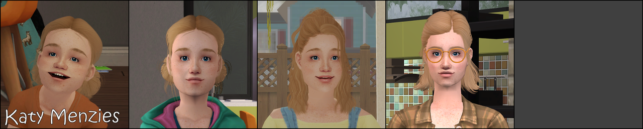 Katy's also changed - she's primary Family B (huge family) and her secondary would have been romance A (serial romancer) but I just didn't get that vibe from her at all. So I made her secondary Knowledge A (good scientist) instead - her hobby is nature/entomology and I always saw her as the kind of nerdy Bug Girl, since she was a kid. So that felt like a good fit for her!